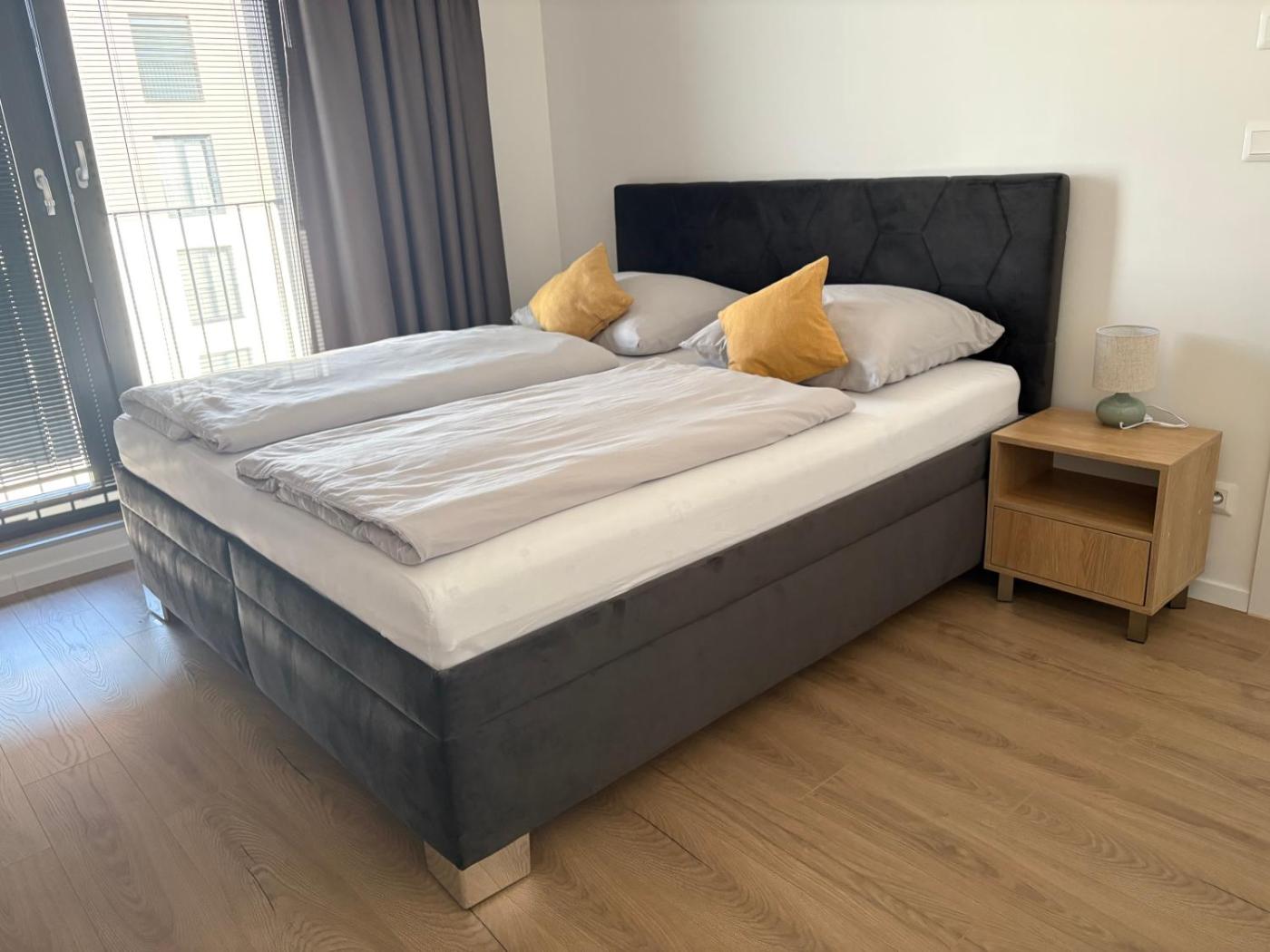 One-Bedroom Apartment. This spacious apartment includes 1 living room, 1 separate bedroom and 1 bathroom with a walk-in shower and a hairdryer. In the well-equipped kitchen, guests will find a stovetop, a refrigerator, a dishwasher and kitchenware. There is air conditioning, a washing machine and a terrace and complimentary winechampagne is offered for guests. The unit has 2 beds.